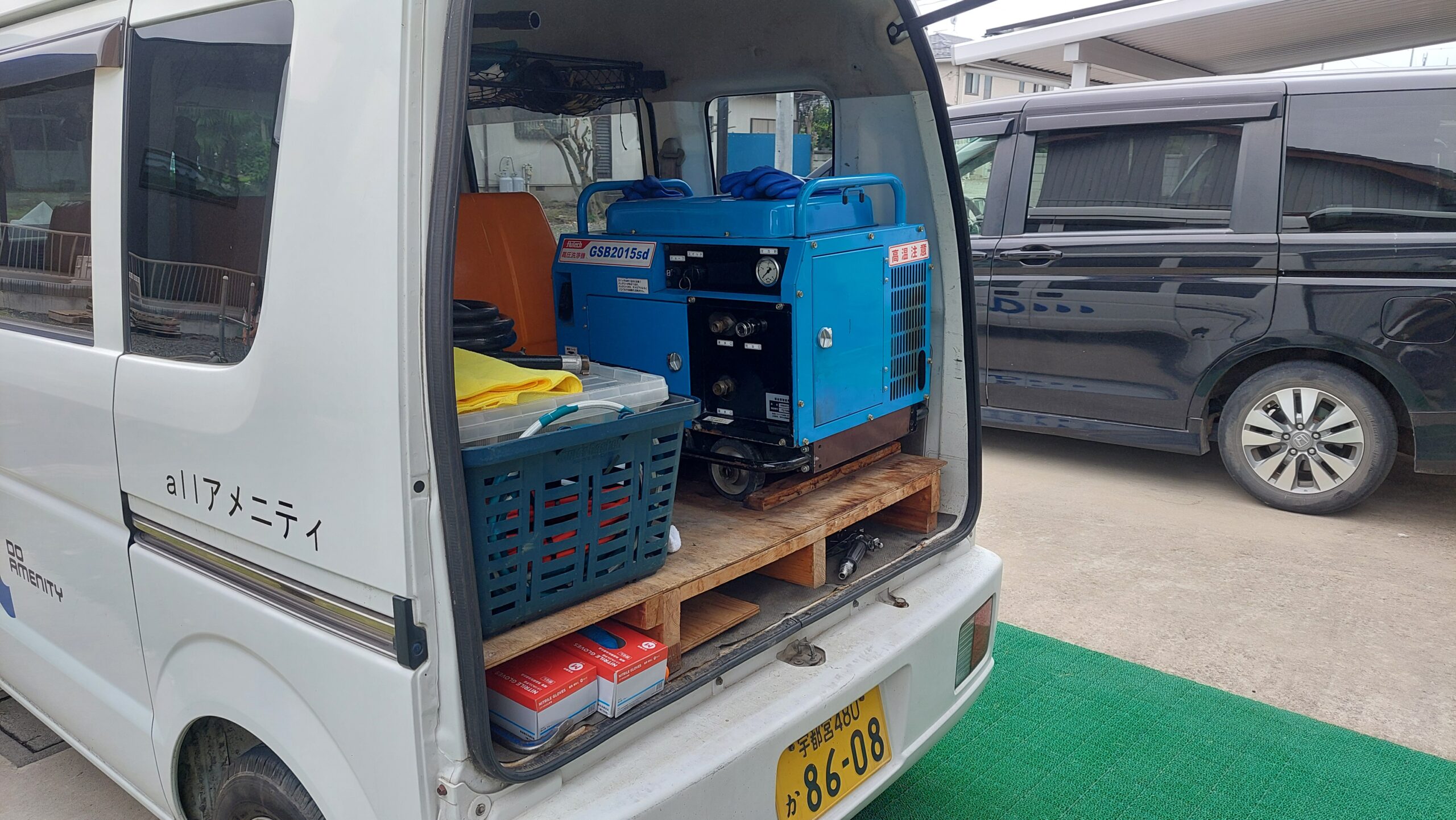 いつもは排水管洗浄や、建物共用部等の清掃に使っている