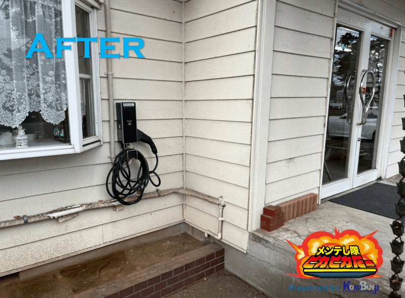 お客様のご希望に合わせ、建物の外壁にEV充電器を取付けさせていただきました。